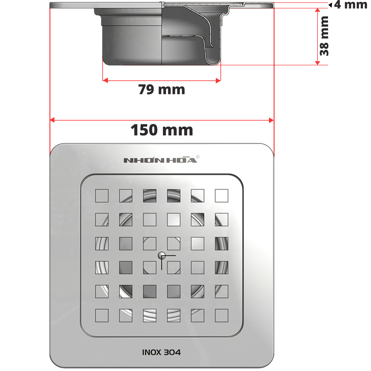 Phễu thu nước 150T-90 Nhơn Hòa bền bỉ cho môi trường phòng tắm, sàn rửa chén, giặt đồ,... được thiết kế cho khả năng lọc rác, chống mùi hôi và côn trùng hiệu quả.
