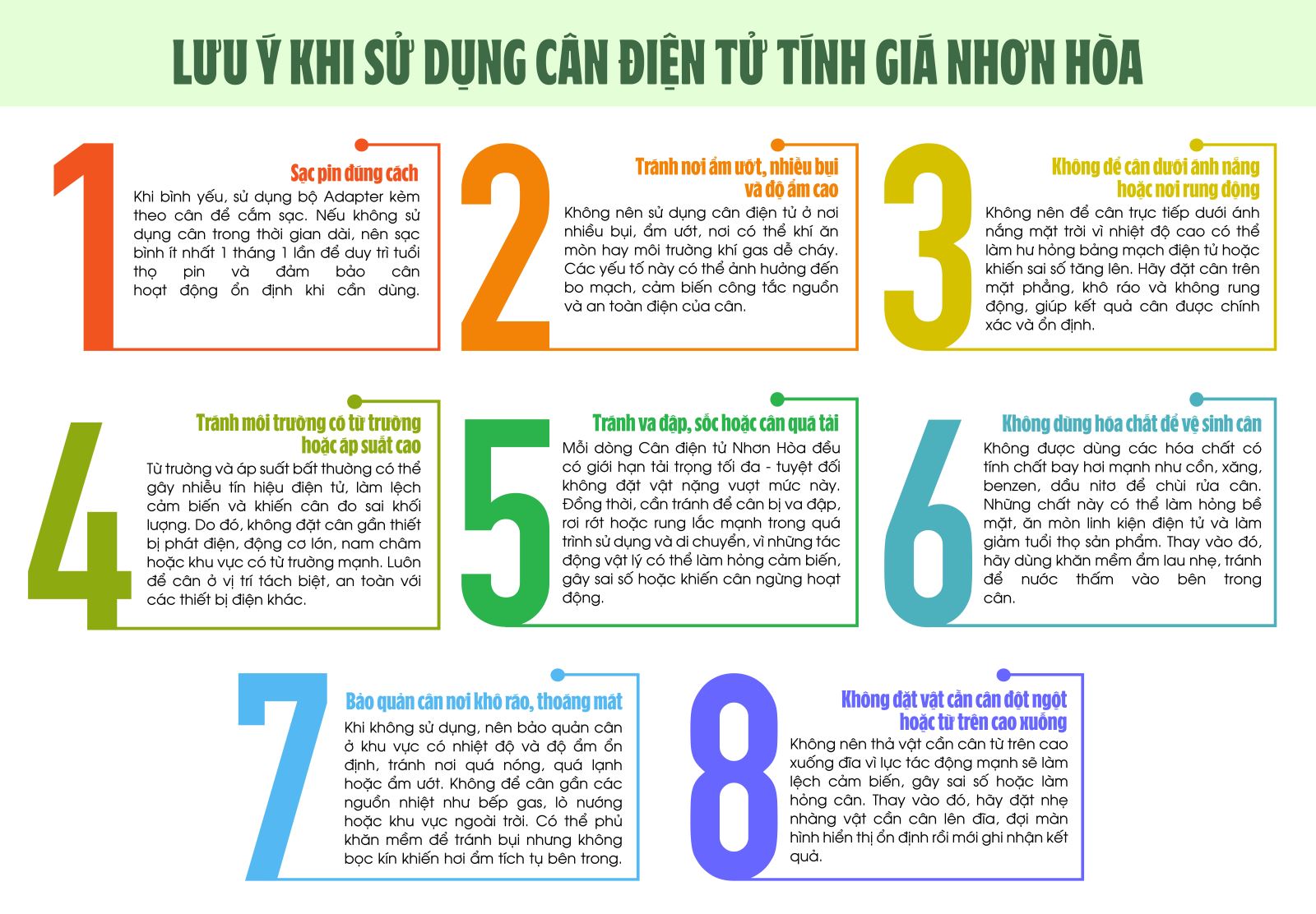 Việc tuân thủ theo những lưu ý trên sẽ giúp bạn sử dụng Cân điện tử tính giá Nhơn Hòa một cách an toàn và hiệu quả, giúp bảo vệ cân khỏi hỏng hóc và đảm bảo tính chính xác trong quá trình sử dụng.