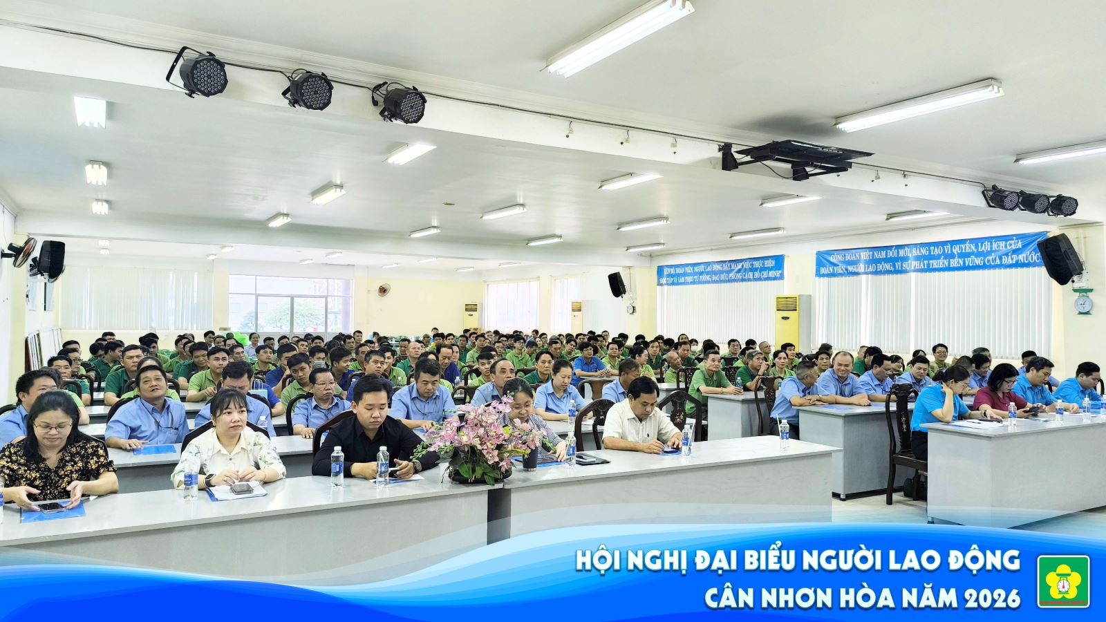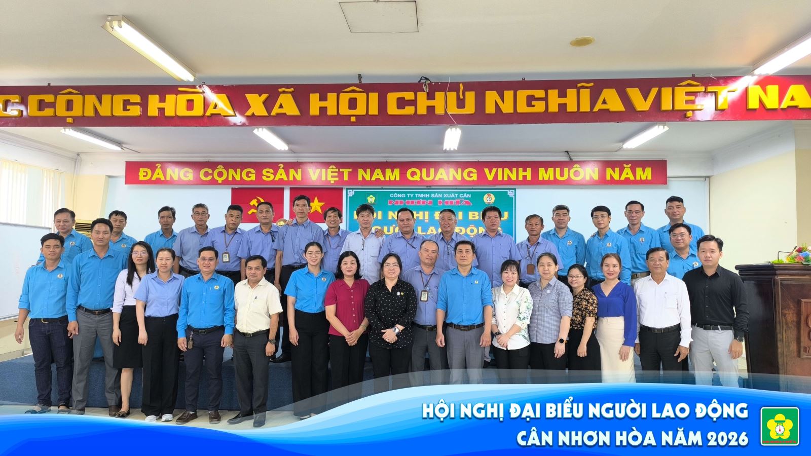 Hội nghị Người Lao động Cân Nhơn Hòa năm 2026 diễn ra với sự tham gia đông đảo của cán bộ, công nhân viên
