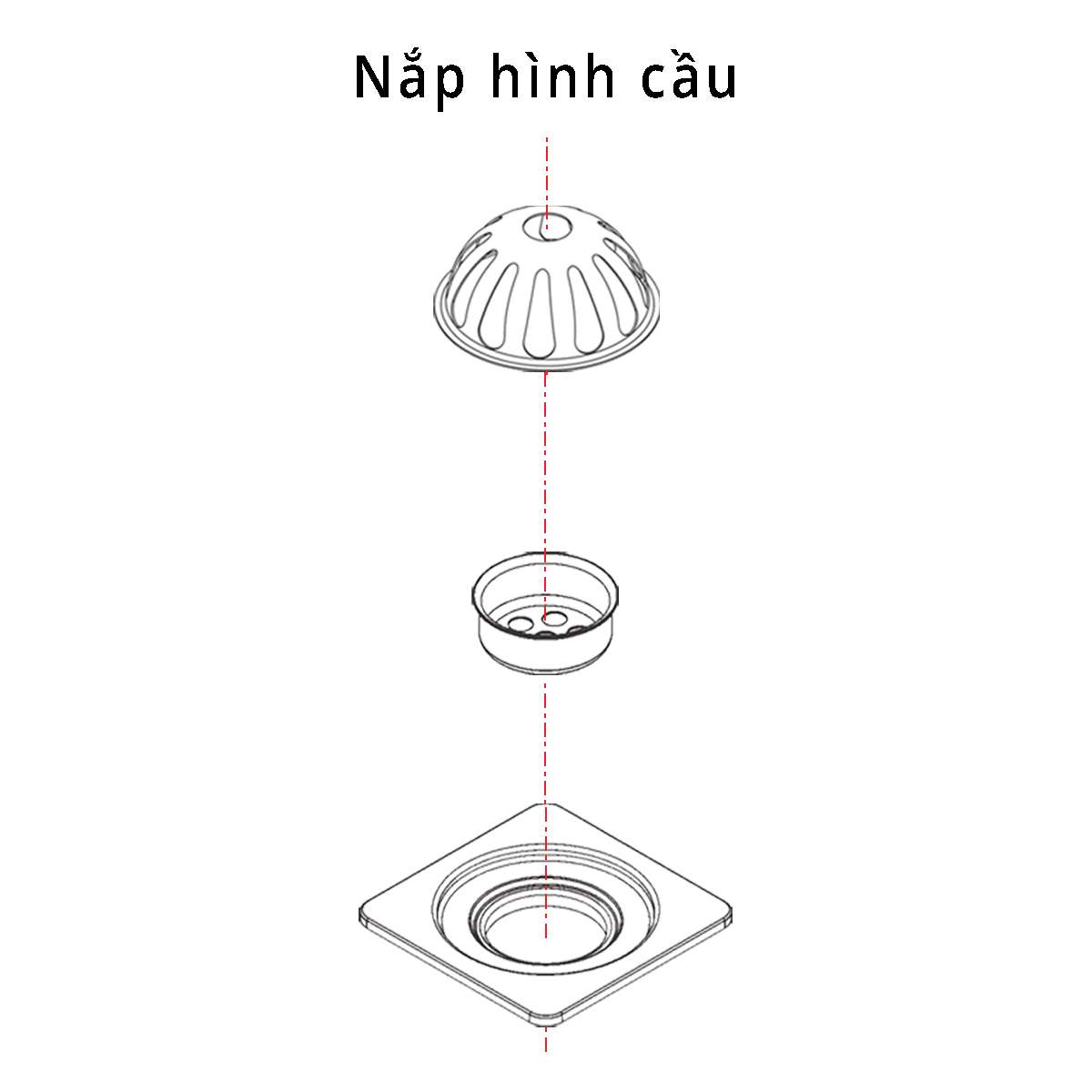 Nắp chặn rác hình Cầu được thiết kế với nhiều lỗ thoát nhỏ giúp ngăn chặn rác, lá cây,… Ngoài ra, các lỗ thoát nước ở lớp ‘lưới chặn bên trong phễu’ hạn chế tối đa rác nhỏ xuống đường ống.