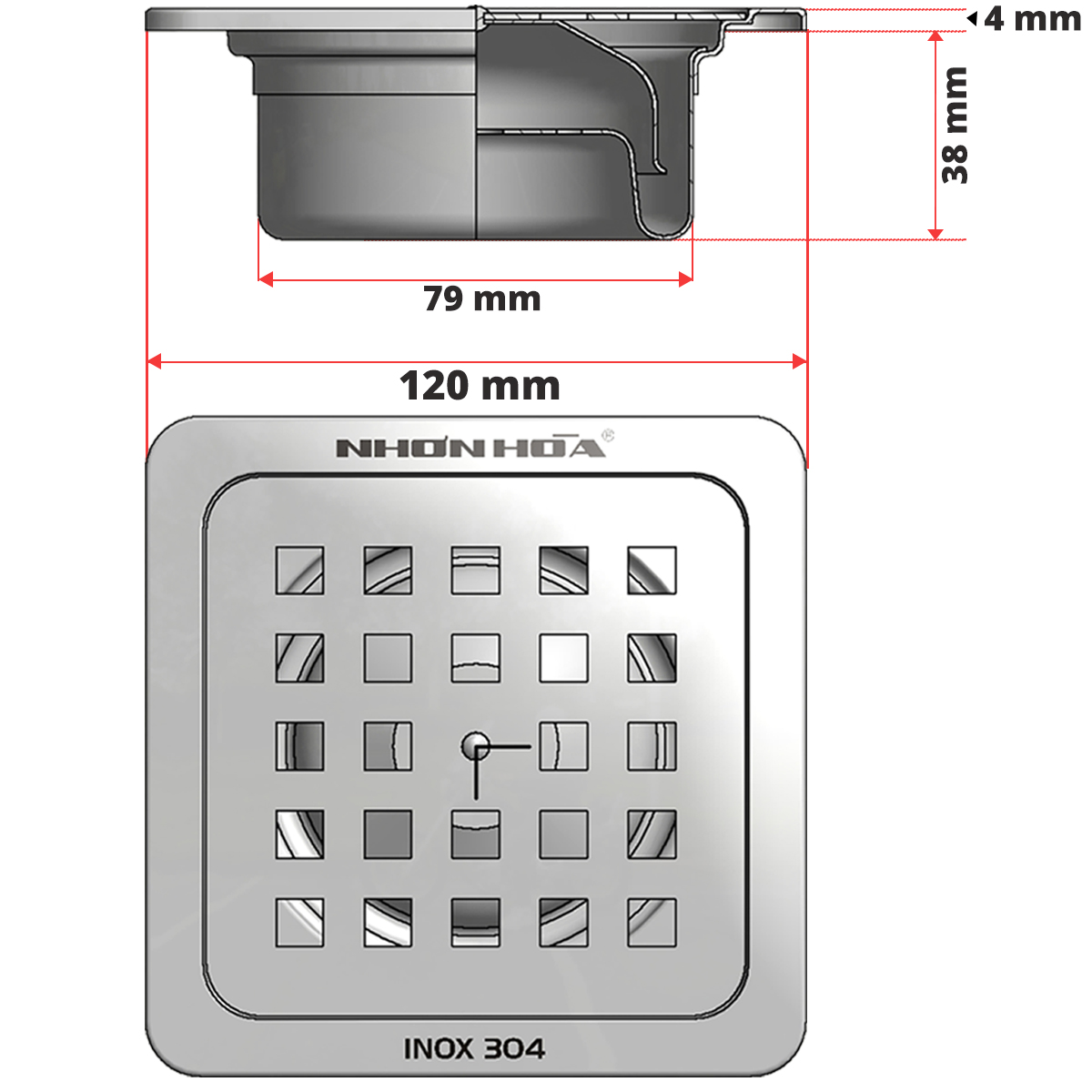 Phễu thu nước 120T-90 Nhơn Hòa bền bỉ cho môi trường phòng tắm, sàn rửa chén, giặt đồ,... được thiết kế cho khả năng lọc rác, chống mùi hôi và côn trùng hiệu quả.